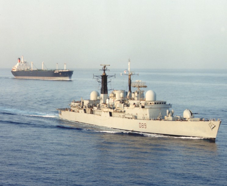 1987: HMS Exeter D-89 in the Persian Gulf as part of a multi-national force protecting shipping during the Iran-Iraq War.