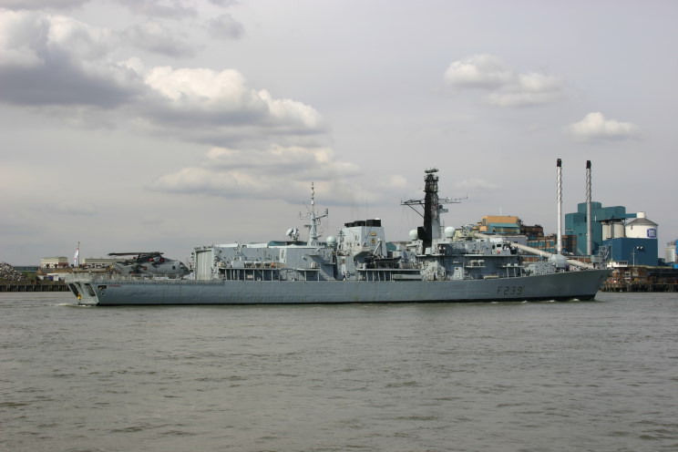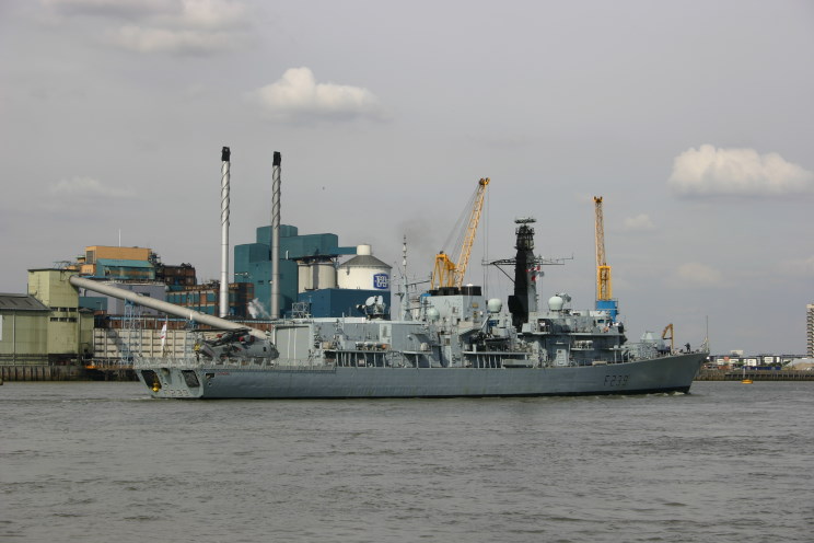 July 12, 2010: HMS Richmond F-239 seen on the Thames River departing London, England. |