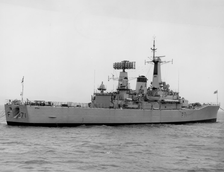 HMS Scylla F-71 off the Ile d' Or, France in 1979. |
