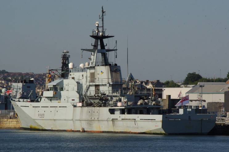June 9, 2011: HMS Mersey P-283 seen passing the Portsmouth Historic Dockyard. |