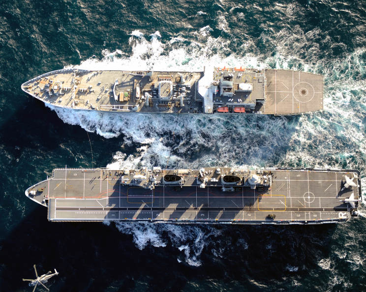 March 2010: RFA Wave Knight A-389 and HMS Ark Royal R-07 conducting a replenishment at sea in the North Sea. |