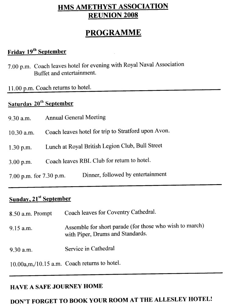 Amethyst Reunion 19-21 September 2008 at Coventry, contact