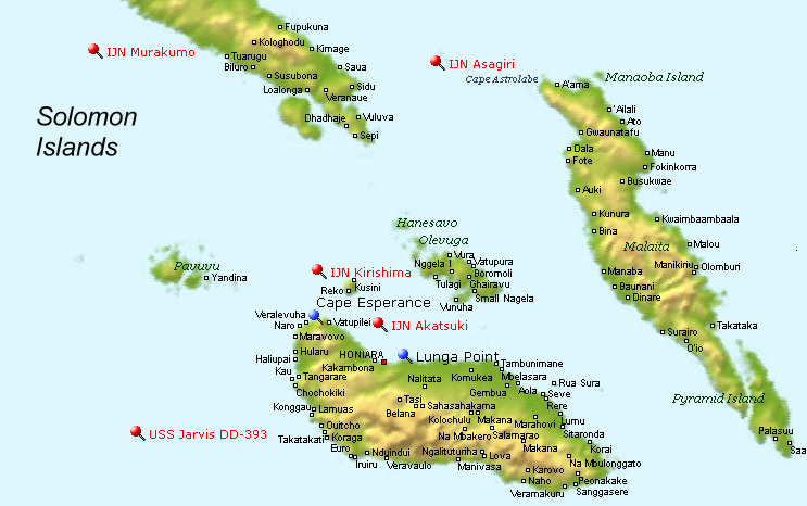 Location of the loss of Kirishima (09.05S - 159.42E).