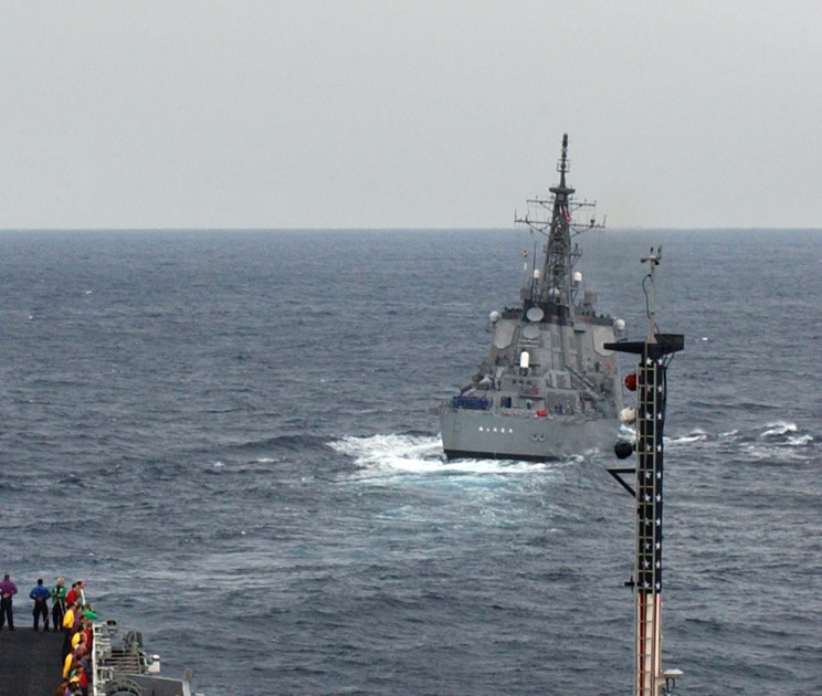 March 18, 2007: Myoko DDG-175 seen passing USS Ronald Reagan CVN-76 in the Philippine Sea. |
