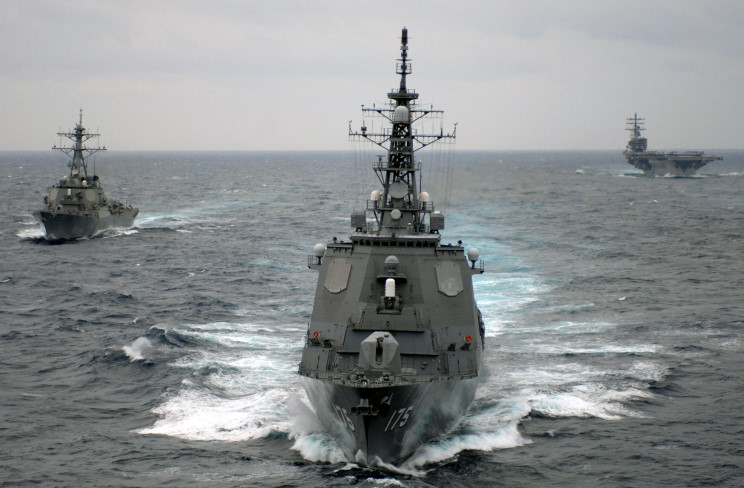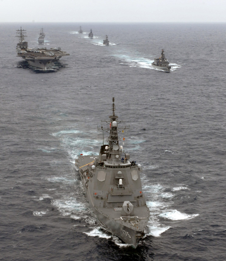 March 18, 2007: Myoko DDG-175, USS Russell DDG-59 and the USS Ronald Reagan CVN-76 underway in the Philippine Sea. |