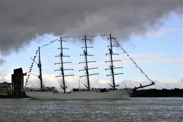July 30, 2017: BAP Unión seen on the River Thames departing London, England for Hamburg, Germany. |