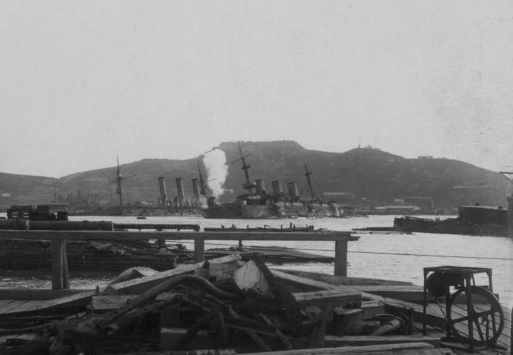 | March 8, 1904: Pobeda seen at Port Arthur (Dalian), Laionig Provence, China. |
