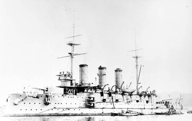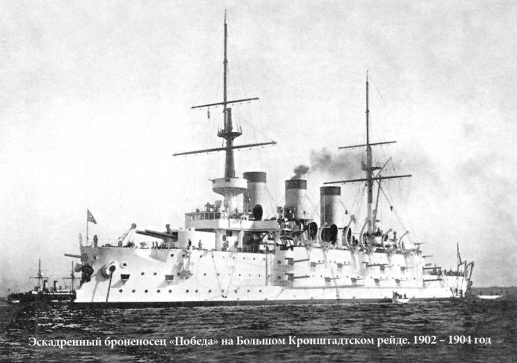 | Suwo, the former Pobeda, now in the service of the Imperial Japanese Navy. |