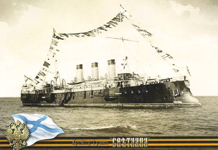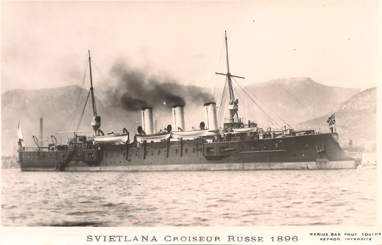 Svetlana postcard. Photo probably taken while ship was in service as the Royal Yacht for Grand Duke Alexei Alexandrovich Romanov, commander-in-chief of the Imperial Russian Navy. |