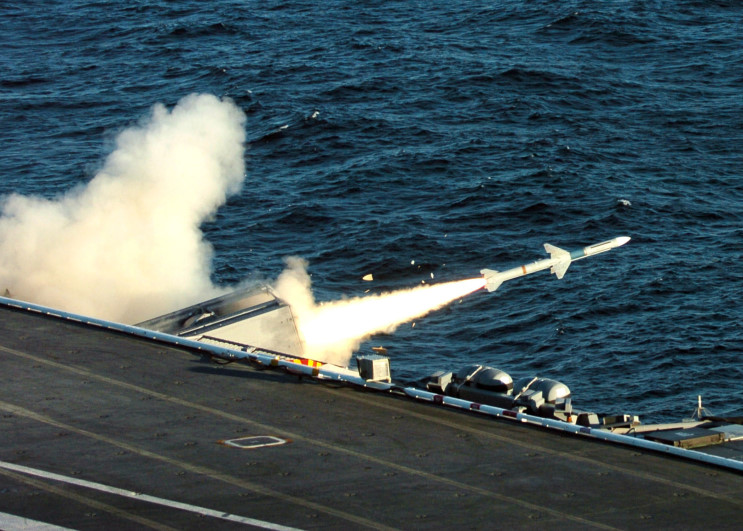 December 13, 2005: USS Dwight D. Eisenhower CVN-69 firing a Sea Sparrow missile.