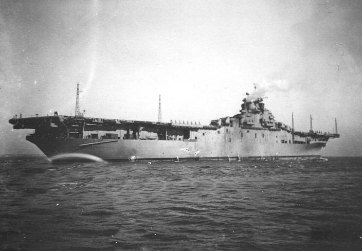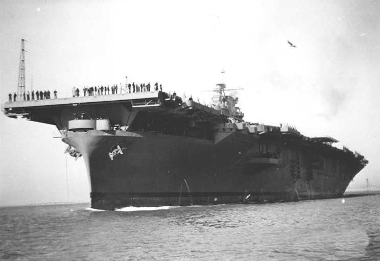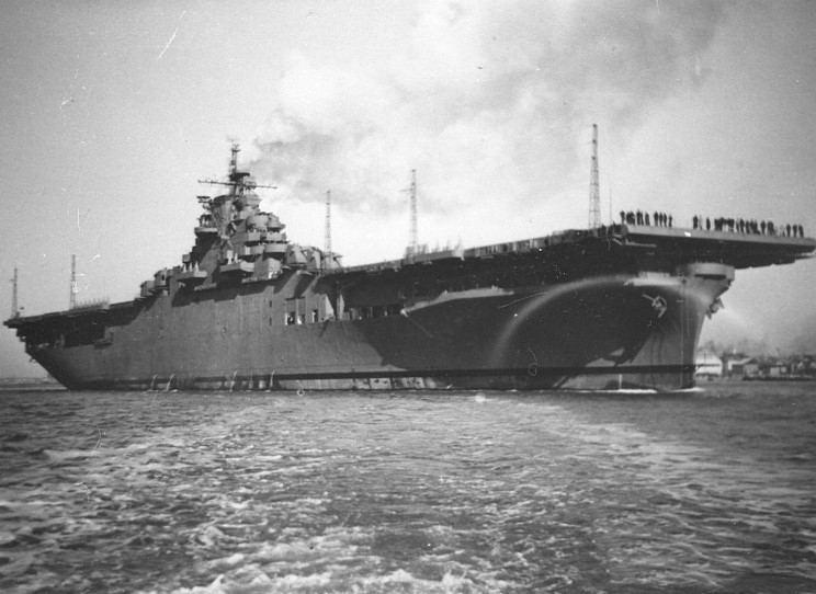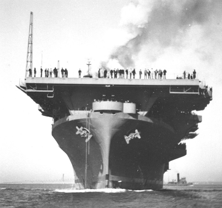 December 1942: Essex CV-9 seen on sea trials off the coast of Virginia. |