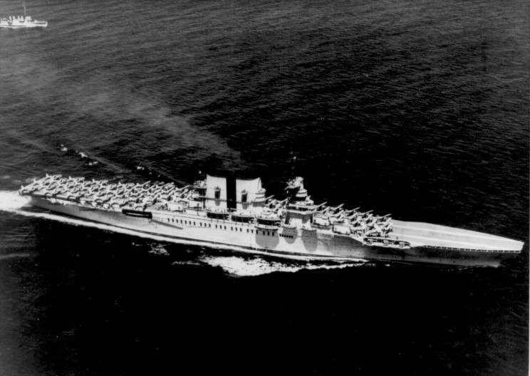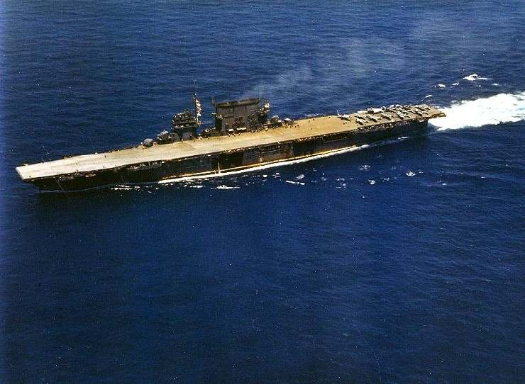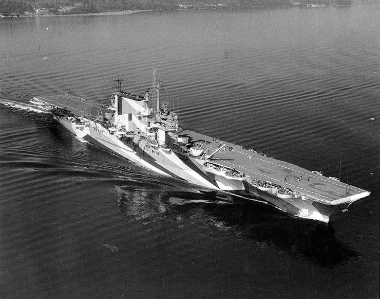 | September 7, 1944: USS Saratoga CV-3 at Puget Sound following an overhaul. |