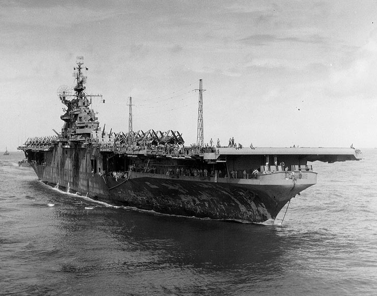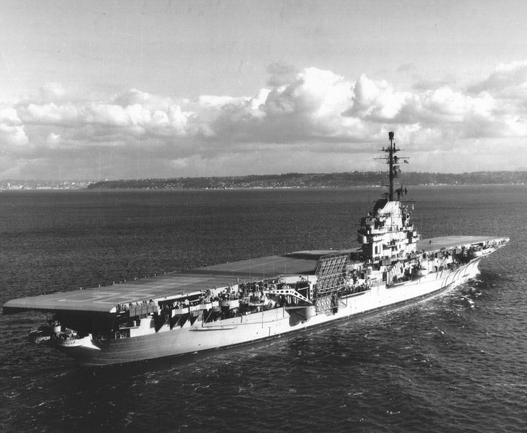 | August 17, 1946: USS Shangri-LA CV-38 seen in the Pacific. |