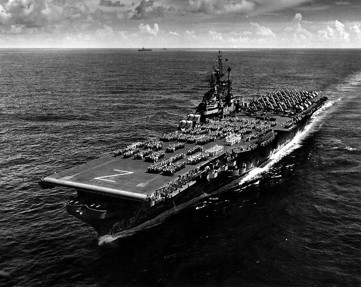| September 3, 1945: USS Shangri-La CV-38 seen in the Pacific. |