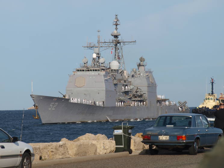 April 24, 2012: USS Bunker Hill CG-52 seen arriving at Fremantle, WA, Australia. This was the seventh visit to Western Australia for Bunker Hill. |