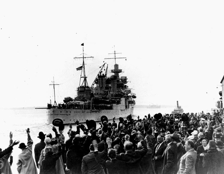 November 18, 1936: USS Indianapolis CA-35, with President Franklin D. Roosevelt embarked, departing Charleston, South Carolina for a Good Neighbor cruise to South America. |