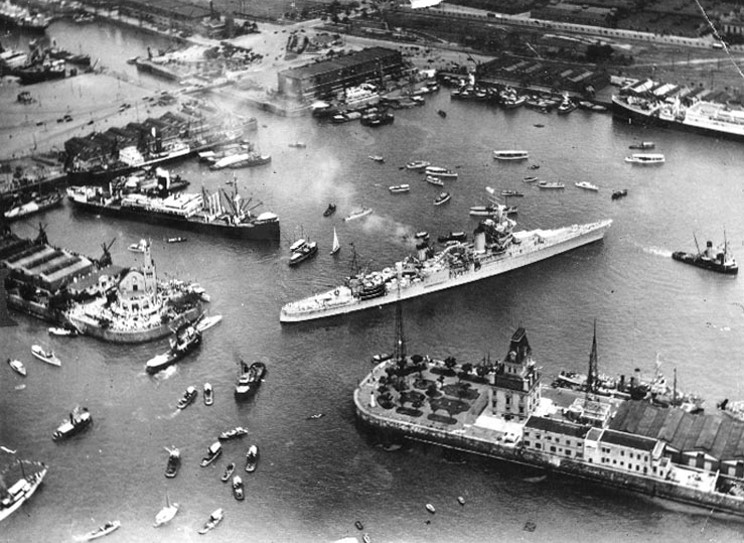 November 30, 1936: USS Indianapolis CA-35 seen arriving at Buenos Aires, Argentina. |