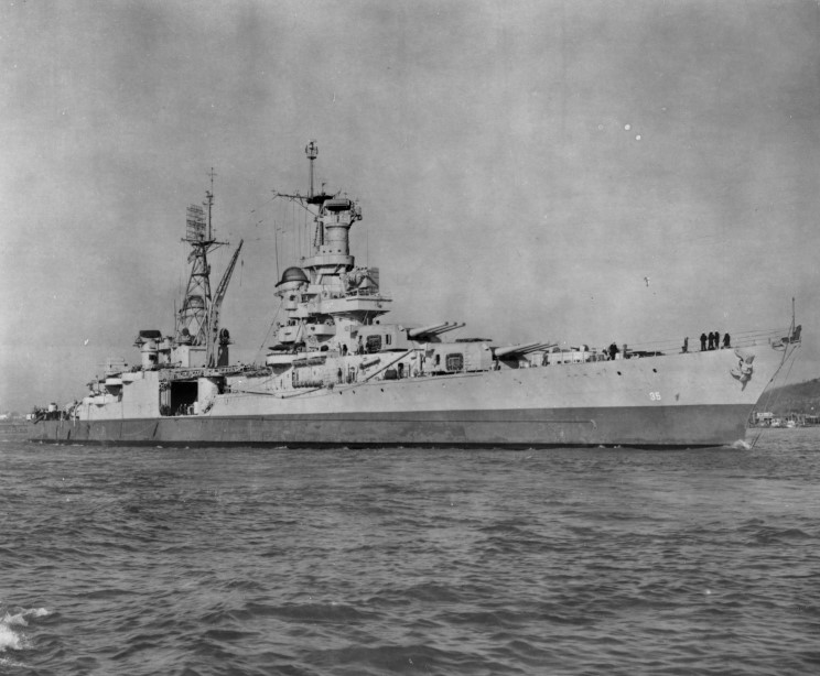 May 1, 1944: USS Indianapolis CA-35 seen off San Francisco, California following an overhaul. |