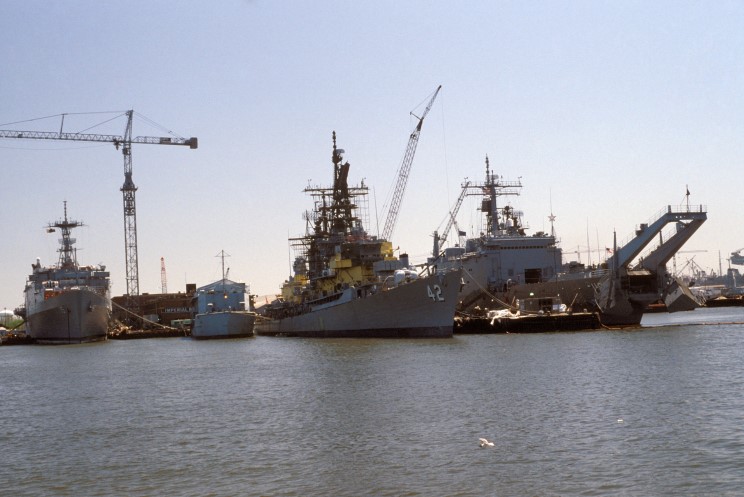 April 27, 1987: USS Mahan DDG-42 at Metro Machine in Norfolk, Virginia. On the far left is the