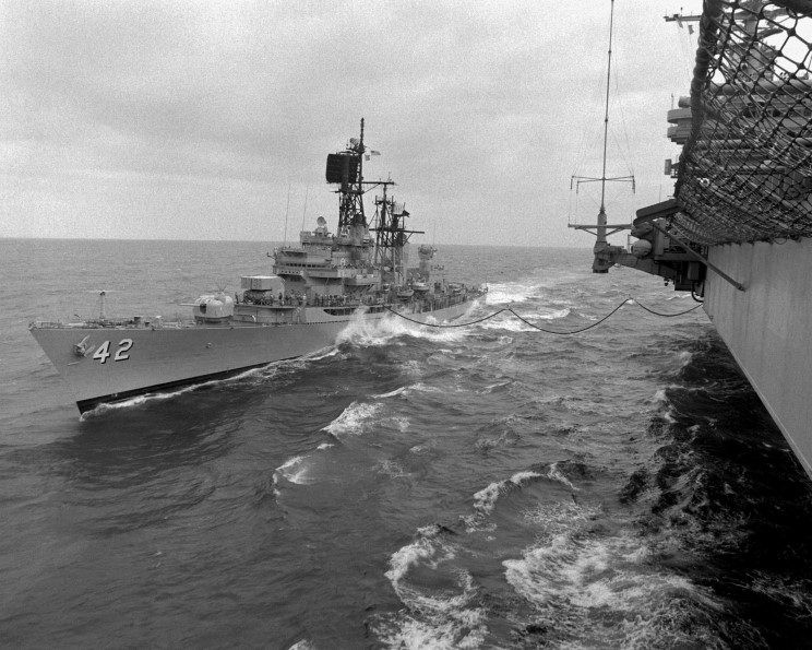 May 6, 1989: USS Mahan DDG-42 refueling at sea from the USS Dwight D. Eisenhower CVN-69 during