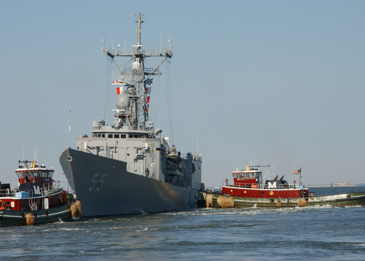 September 16, 2003: USS Elrod FFG-55 departing NAS Norfolk to avoid damage from the approaching Hurricane Isabel.