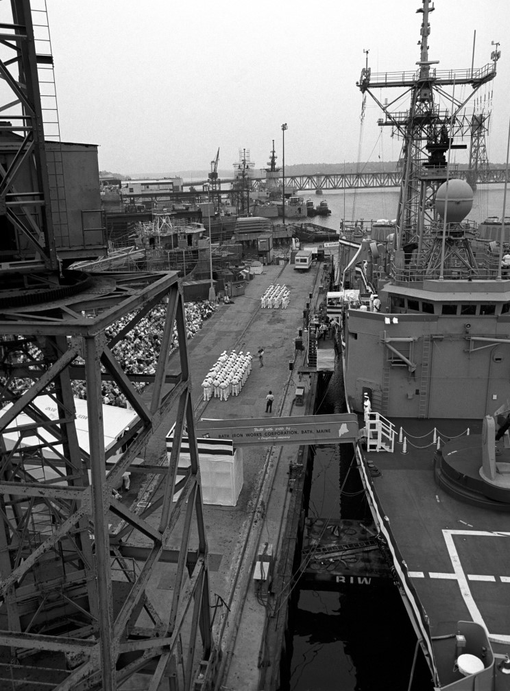 June 20, 1981: Commissioning ceremony for the USS Flatley FFG-21 at Bath, Maine.