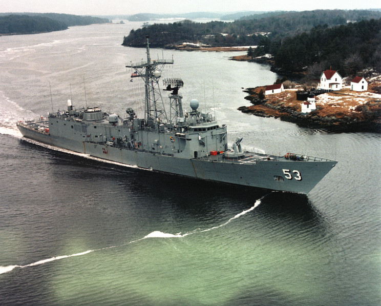 December 12, 1984: PCU Hawes FFG-53 on sea trials off the coast of Maine. |