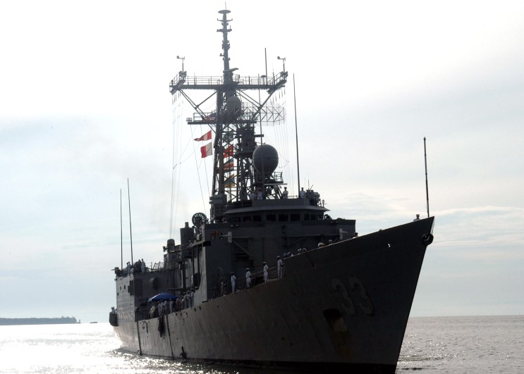 August 3, 2007: USS Jarrett FFG-33 arriving at Muara, Brunei during CARAT 2007.