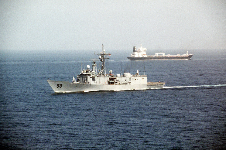 April 1, 1992: USS Taylor FFG-50 in the Strait of Hormuz during Operation Desert Storm.