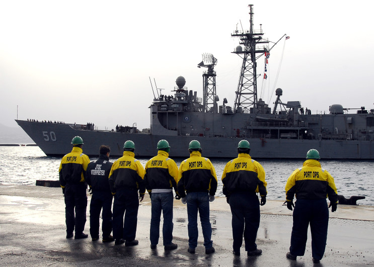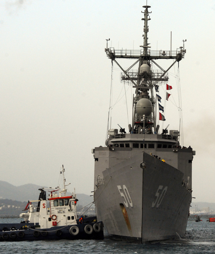 January 14, 2009: USS Taylor FFG-50 arriving at Souda Bay, Crete for a port visit. |
