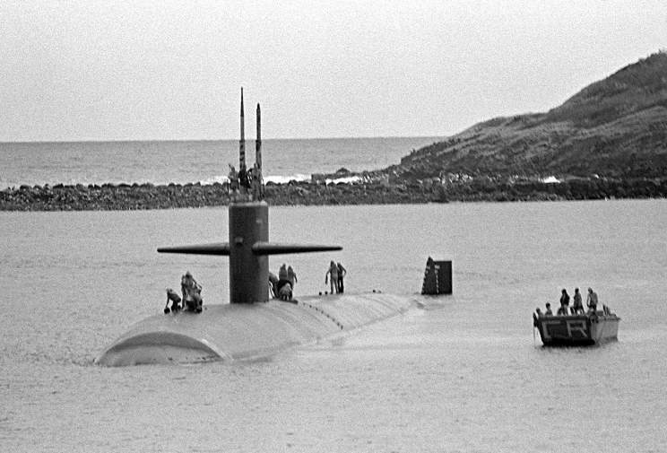 February 21, 1992: USS Indianapolis SSN-697 arriving at Naval Station Subic Bay, Luzon, Philippines. |