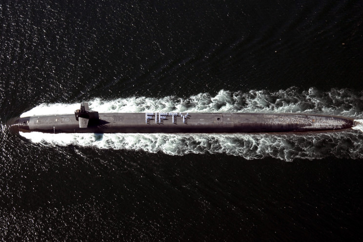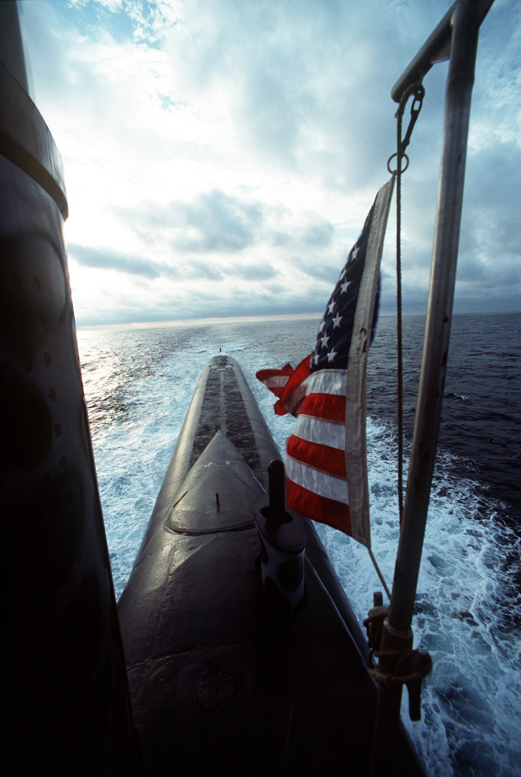 November 1995: Looking aft from the sail of USS Pennsylvania SSBN-735 after departing Naval Submarine