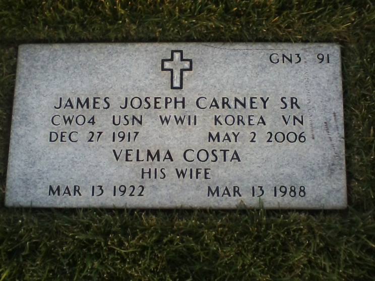 38. Aug. 2, 2016 My father, James Joseph Carney, was from Grafton, West Virginia. He enlisted in the Navy in August 1936. After completing boot camp, he was stationed on the USS Arkansas (BB-33) from 1936 to 1940. He retired on December 1, 1969, at the Naval Training Center in San Diego, CA, and held the rank of CWO-4. He was also on the: USS Hamilton (DD-141) - a few months in mid-1940. USS Healy (DD-672) - 1943 to 1945 (was part of the original crew). USS Stribling (DD-867) - 1945 to 1946. USS Essex (CVA-9) - 1955 to 1957. He is interred at Fort Rosecrans National Cemetery in San Diego (Point Loma), California. Jim Carney, Jr. Technical Sergeant, USAF Retired |