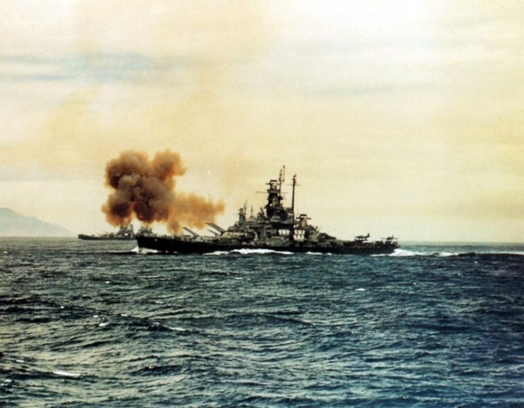 July 14, 1945: USS Indiana BB-58 shelling Kamaishi, Japan. |