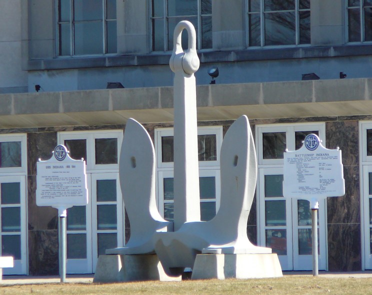 One of the anchors from the USS Indiana BB-58 on display at the Allen County War Memorial Coliseum in Ft. Wayne, Indiana. |