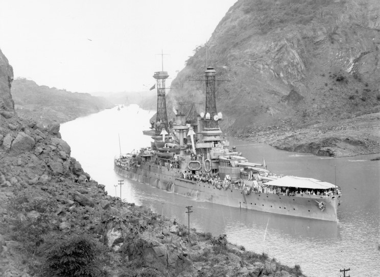 June 13, 1920: USS Michigan seen in the Panama Canal. |