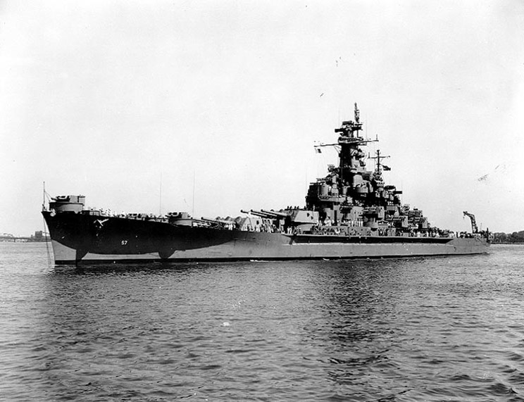 August 24, 1944: USS South Dakota BB-57 seen off the Puget Sound Naval Shipyard, Bremerton, Washington.