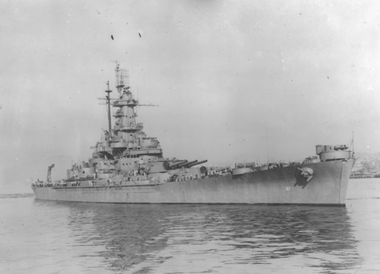 February 24, 1945: USS South Dakota BB-57 seen en route to Tokyo.