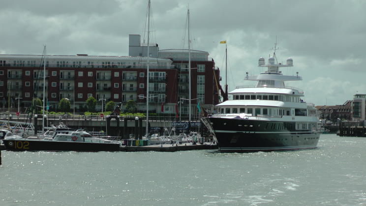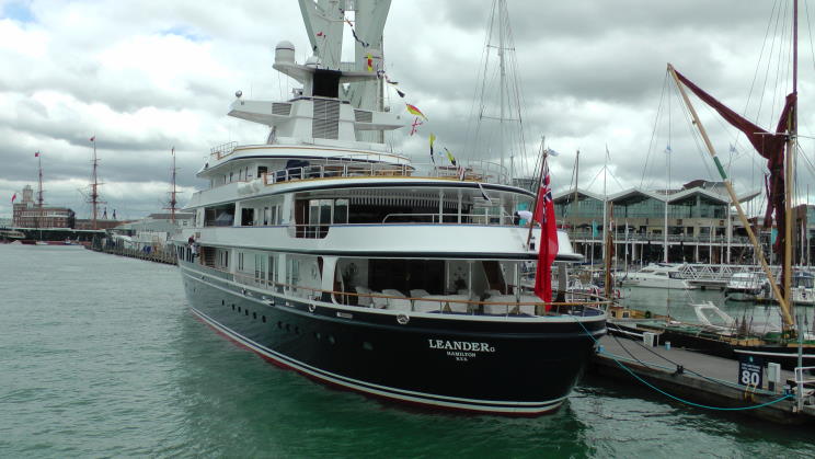 June 9, 2012: Leander G seen at Portsmouth, England. HMS Warrior is seen in the background. |