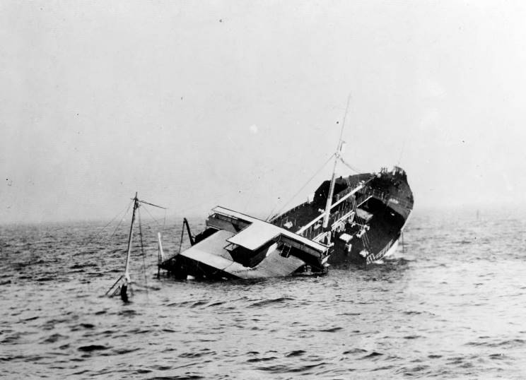 Launched on May 19, 1917 the tanker Frederick R. Kellogg was one of the largest ships built to date at Moore & Scott Iron Works in Oakland, California. Over 425' long and registered at 7,127 gross tons her steam turbine could propel her at at 11 knots. Her owners, the Panama-American Petroleum and Transportation Company of Los Angeles were quite proud of their new ship, dressed in flags and with a cadre of guests, her trials were held on July 28, 1917. They ended at the Golden Gate Bridge after which she put back to the shipyard and was turned over to the company. Thirteen months later she made headlines around the country when she was torpedoed off Barnegat, New Jersey. She was en route from Tampico, Mexico for Boston when, without warning, on August 13, 1918 a torpedo slammed into her port quarter near the engine room. She was loaded with about 75,000 barrels of crude oil, fortunately for her crew the cargo did not explode. The explosion had killed several men in the engine room so when the master, C. H. White, ordered the engines stopped, there was no answer. All power had been lost and no distress signal could be sent, the men were on their own. The ship settled very rapidly, in less than four minutes her decks were under water, within her steel walls seven men were trapped, those killed by the torpedo and those who could not escape before she went down. Those who survived gathered on the bows and either jumped into the sea or entered the two remaining boats, one lifeboat and a motorboat of which the motor would not fire. After getting away the survivors in the boats picked up their shipmates who had jumped into the sea and joined up to head for land. At first they considered reboarding the ship, whose bow was still above water, but one survivor later stated that they were concerned that if they reboarded the ship that the submarine would fire on them. Some reports claim that the submarine came to the surface for a brief time and then submerged, however another survivor, Ensign A. Hutchinson, USNRF, later wrote that the submarine was never seen by him and that none of the crew had told him of sighting the submarine. A haze covered the area at the time, but the seas were dead calm, Hutchinson said that "anything moving or stationary could have been seen". The thirty-six survivors in the two boats, the motorboat being towed by the lifeboat, made for land, but were picked up less that three hours later by SS Huron and landed at New York. The unseen marauder was SMS U-117 commanded by Kapitänleutnant Otto Dröscher, a veteran U-boat commander who had been the first commander of U-20, the boat which sank the Lusitania. Dröscher conducted a very successful campaign off the U.S. coast in August of 1918 sinking 20 ships for about 20,000 tons. Furthermore mines laid by U-117 continued to sink and damage shipping until November of 1918. Three more ships totaling 6,841 tons went down and the battleship USS Minnesota was damaged. The low tonnage is due to a dozen fishing and sailing vessels, many under 50 tons. Dröscher surrendered his boat with the rest of the German fleet on Nov. 21, 1918. The boat was brought to the U.S.A. for exhibitions and later scuttled off the Virginia Capes. On Aug. 28, 1918 the Frederick R. Kellogg was towed into port and repaired, she continued to sail under the same name and survived the Second World War, the ship was scrapped at Southern Scrap Material in New Orleans, Louisiana in 1947. |