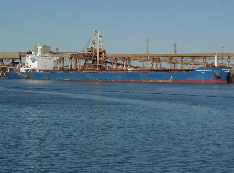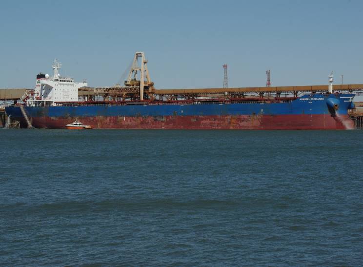 August 7, 2015: Anangel Aspiration seen at Port Hedland, WA, Australia. Note she is sitting much lower in the water. |