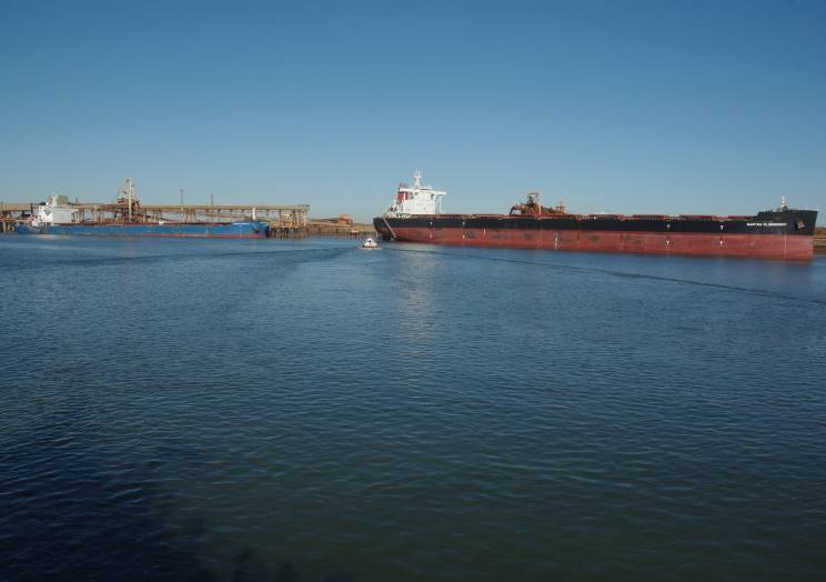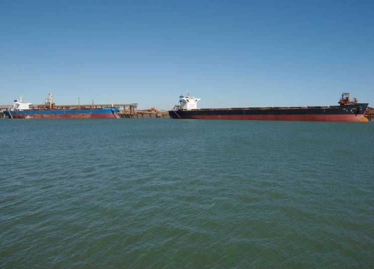 August 7, 2015: Anangel Aspiration seen at Port Hedland, WA, Australia. Martha Oldendorff is see at right. |
