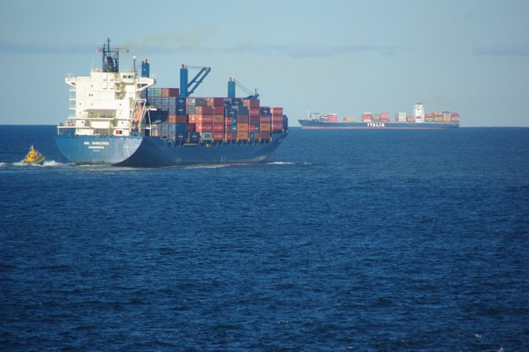 August 24, 2011: ANL Binburra seen departing Port Botany, Sydney, Australia. The pilot cutter Governor Bligh is seen alongside and the container ship Ital Moderna is seen in the background. |