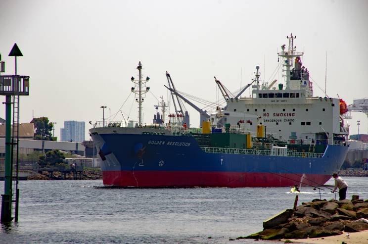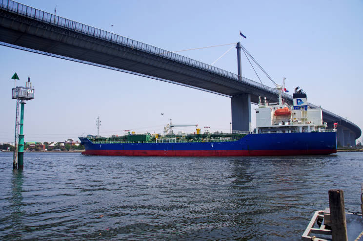 January 20, 2020: Golden Resolution seen passing under the Westgate Bridge, Yarra River, Melbourne, VIC, Australia. |