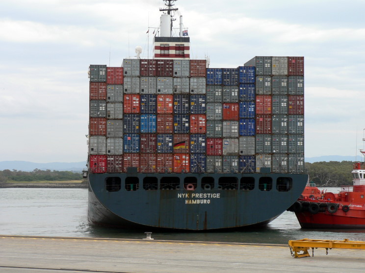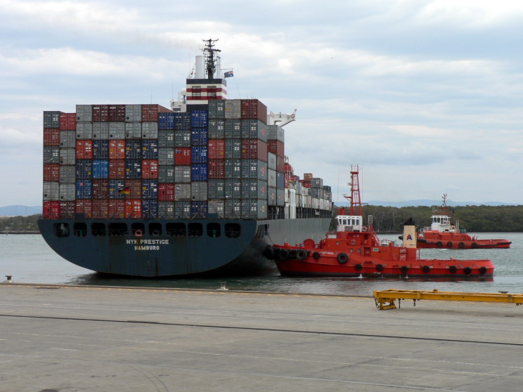 The NYK Prestige being assisted by the tug Kuttabul at Brisbane, Australia. |