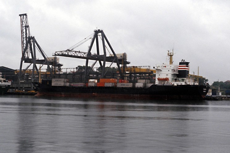 The container ship Planeta seen in 1980 at White Bay, Sydney, Australia.