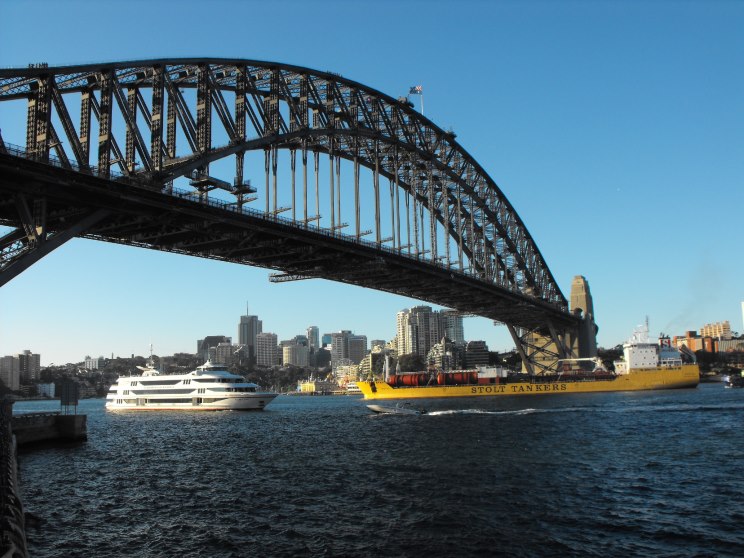 March 17, 2010: Stolt Sea and the ferry Sydney 2000 seen passing under the harbour bridge in Sydney, Australia. |