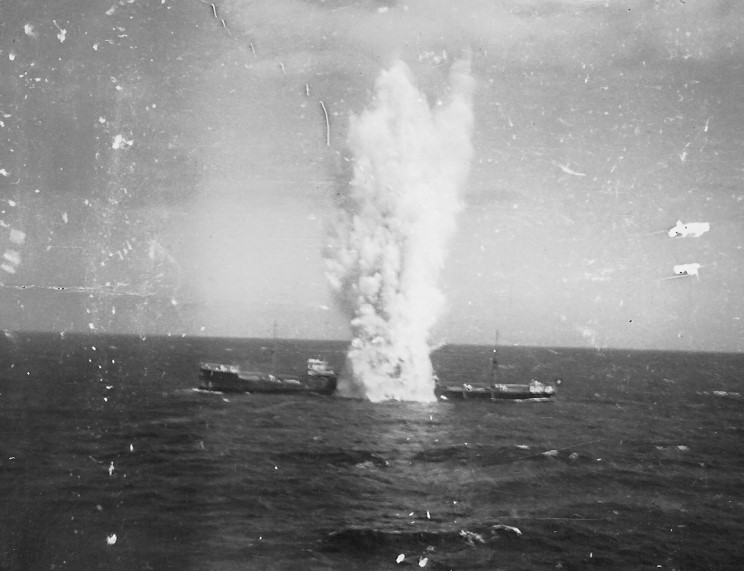 December 3, 1939: The Tairoa being hit by a torpedo from the Admiral Graf Spee.   |
