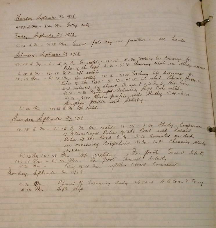 1. May 21, 2018 I have a handwritten, three-ring log book starting July 29th, 1918, with the name R. D. Houghton on the front cover. The book is meticulously illustrated and seems to be a new recruits' training log as there are tabs for general construction of ship, ground tackle, signals, weather, stowage of cargo, etc. I just want to get it to someone that appreciates historical items like this. A bonus would be someone that would try and locate the authors family to see if they would want it. It came from my elderly next door neighbor that moved back up north with her family. Her name was Barbara Hart. I am thinking her maiden name might have been Houghton, but I'm not sure. The book, along with some other items were left at the curb for trash. I couldn't let this be thrown away. Lori Lheureux West Melbourne, FL |