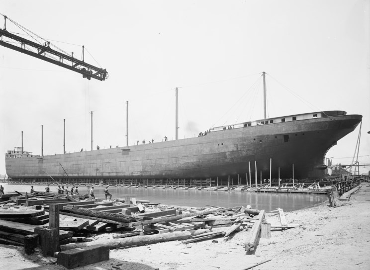 William E. Corey on the ways at Chicago Shipbuilding Company, South Chicago, Illinois prior to launch. |